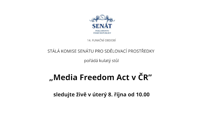 Sledujte kulatý stůl na téma “Media Freedom Act v ČR”, který pořádá Stálá komise Senátu pro sdělovací prostředky. Se svými příspěvky vystoupí koordinátor projektu Nezávislá.média Martin Luhan a specialista na mediální právo Aleš Rozehnal, který rozebere postavení mediálního regulátora a rad České televize, Českého rozhlasu a ČTK.